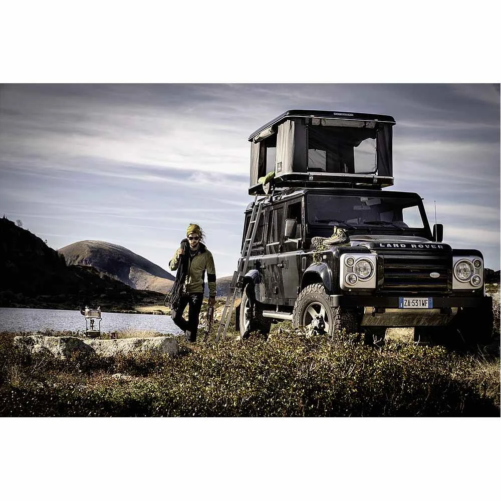 Vier Befestigungen zur Befestigung am Dachträger, vier Türen und vier Fenster mit verstellbaren Öffnungen inklusive Moskitonetze. Zwei abnehmbare Taschen an den Seiten, elastische Gummizüge zur einfachen Faltung des Stoffes, zwei bis vier Kissen je nach Modell, höhenverstellbare Aluleiter 4 x 4 (Länge 130-222 cm) mit Leiterbeutel, Staunetz am Dachhimmel.
