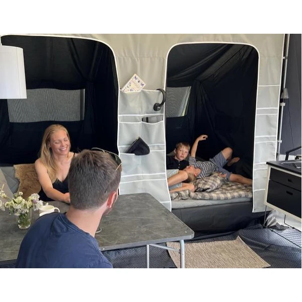 Diese Schlafkabine ist für die linke Seite (Deckel) Ihres Camp-let (außer Passion) geeignet. Sie verfügt über ein Moskitonetz, das zugleich eine ausgezeichnete Belüftungsmöglichkeit darstellt. Die Schlafkabine eignet sich auch für ältere Camp-let-Modelle. Bei 30 Grad waschbar, jedoch nicht trocknergeeignet.