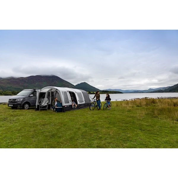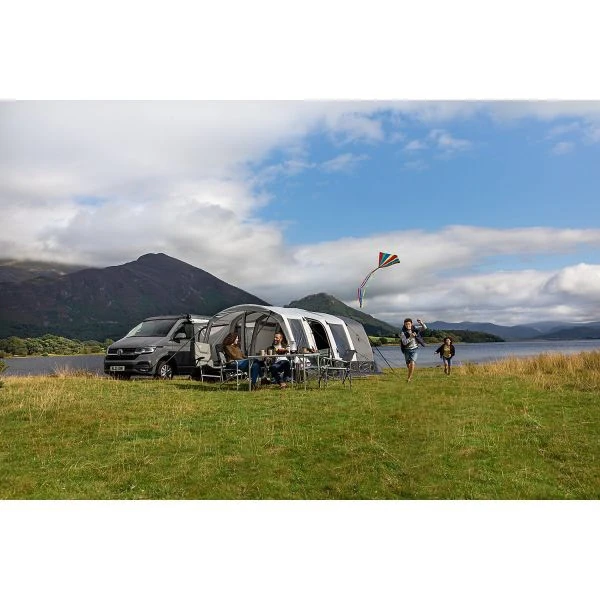 Das Journeymaster Deluxe L ist als geräumiges Vorzelt mit BlackOut Bedroom Schlafkabinen der perfekte Begleiter auf Ihrem nächsten Trip mit dem Van. Das Vorzelt ist dank seiner vormontierten Stahlstangen und dem Luftgestänge einfach und schnell aufzubauen und somit gut geeignet für einen Roadtrip mit vielen Zwischenstopps. Die integrierten großen Fenster ermöglichen einen guten Lichteinfall und die mit der BlackOut Bedroom Technologie ausgestatteten Schlafkabinen garantieren zugleich einen erholsamen Schlaf. Dank dieser Technologie werden bis zu 99 % des Tageslichtes aus den Schlafbereichen ferngehalten