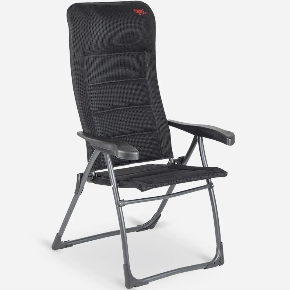 Ein leichter und besonders stabiler Stuhl. Dieser Stuhl bietet dank der in 7 Stufen verstellbaren Rückenlehne und dem gepolsterten 3D-Stoff maximalen Komfort. Die komfortable Polsterung des Stoffs ist besonders luftdurchlässig und hält, aufgrund der offenen Zellstruktur, keine Feuchtigkeit zurück. Dadurch trocknet dieser Stuhl deutlich schneller als Stühle mit herkömmlicher Schaumstoffpolsterung. Zudem sind die Rückenlehne, die Sitzfläche und die Armlehnen ergonomisch geformt.