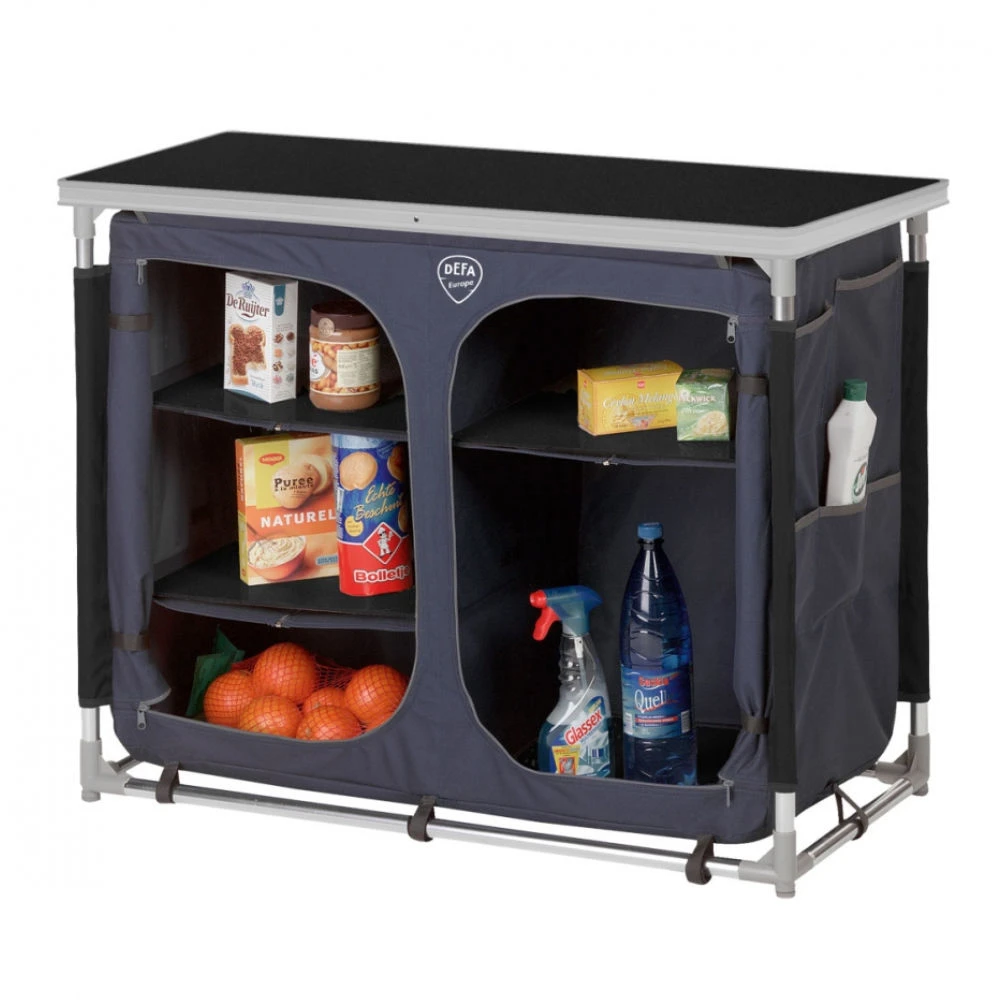 Organizer-Taschen für zusätzlichen Stauraum. Schnell auf- und abbaubar. Zusammenfaltbar. Mit 4 Innenablagen und einer obenliegenden Deluxe-Arbeitsplatte.