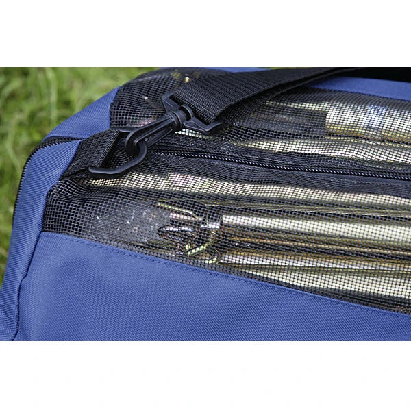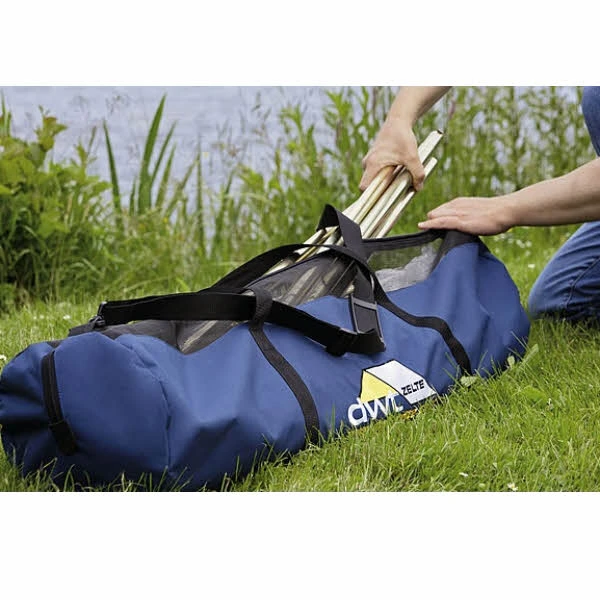 DWT Gestängetasche aus robustem Oxford-Polyester Material, innen beschichtet. Zur guten Belüftung ist im oberen Bereich ein breiter Lüftungsstreifen eingenäht.