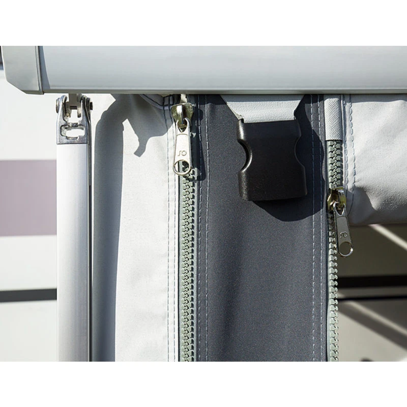 - an jeder Seitenwand sitzt ein Reißverschluss, der es Ihnen erlaubt, die Eingangstür zu öffnen und seitlich aufzurollen. Durch das Öffnen des Reißverschlusses können Sie ganz einfach und schnell an die Seitenwand des Fahrzeugs gelangen, um zum Beispiel auf Serviceklappen zuzugreifen.