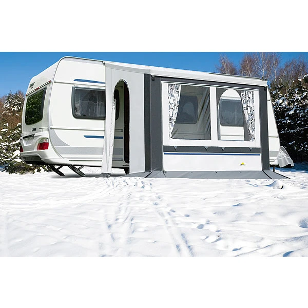 Insbesondere Fans des Wintercampings wird das Modell Cortina II begeistern: Über das glatt abschließende Dach (ohne Überstand) rutscht der Schnee einfach ab. Äußerst strapazierfähige Materialien und das durchdachte Konzept machen das Vorzelt zum perfekten Urlaubsdomizil – an 365 Tagen im Jahr.