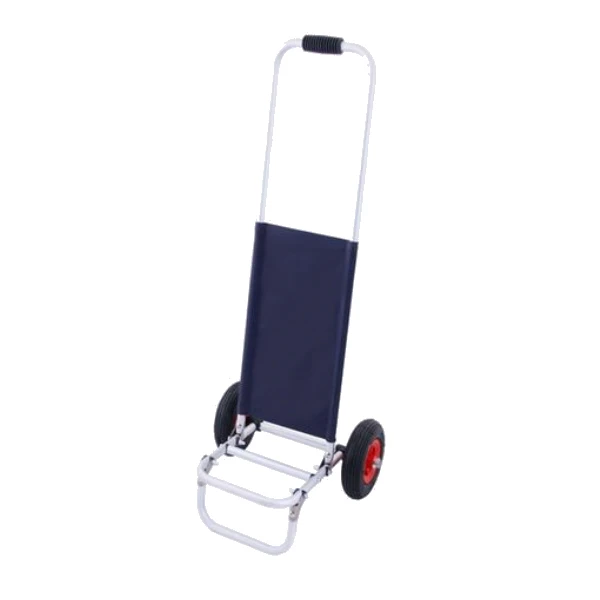 Die Räder sind dank Schnellverschlüssen schnell abgenommen. Der leichtgewichtige Campingboy ist aus dickwandigem, eloxiertem Aluminiumrohr hergestellt.