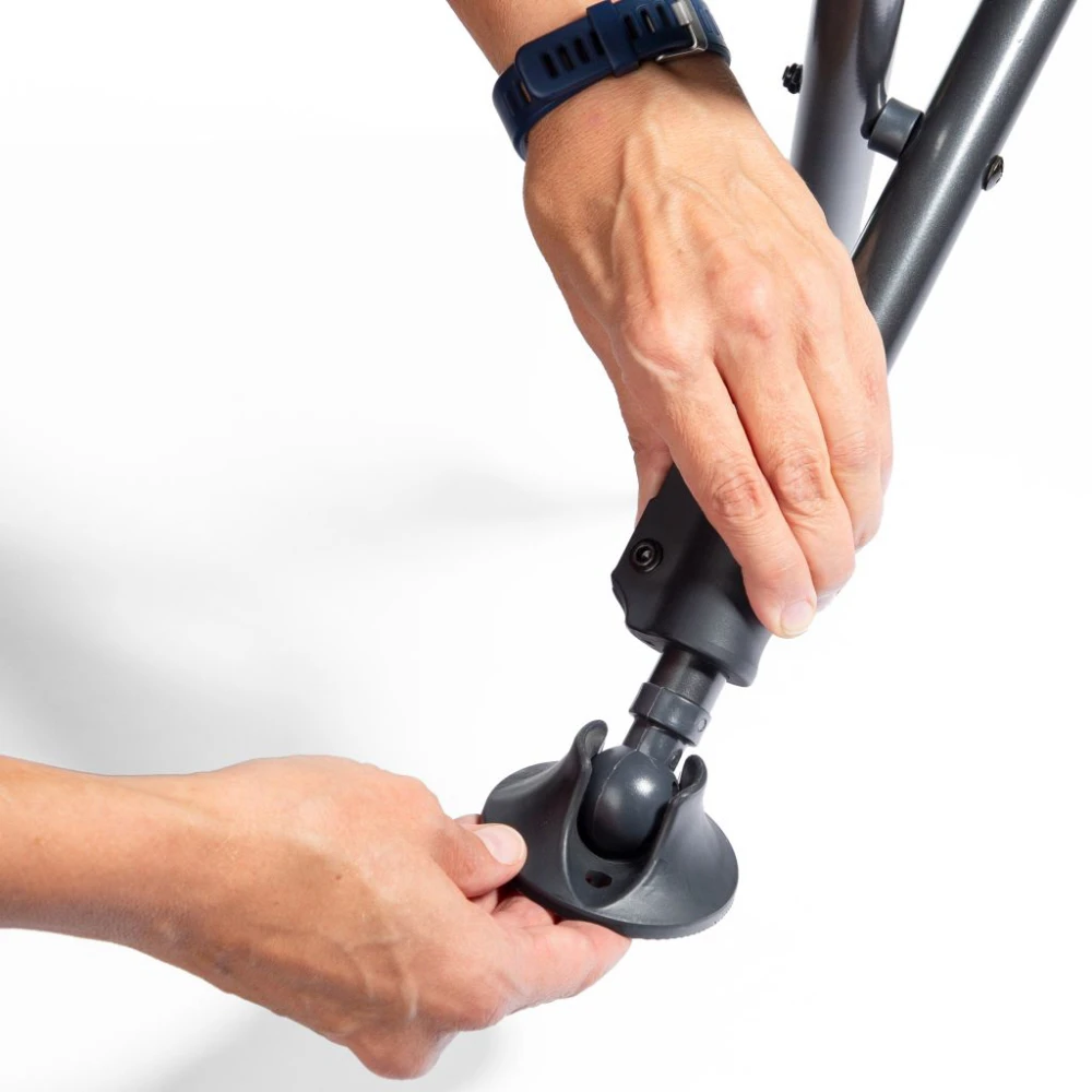 Als Soloartikel ein handlicher, bequemer Hocker. Kombiniert mit der Stuhlserie HighQ wird der Hocker zu einer Fußauflage, der Campingstuhl zu einer Relaxliege. Gefertigt aus hochwertigem Stoff und pulverbeschichtetem Aluminium.