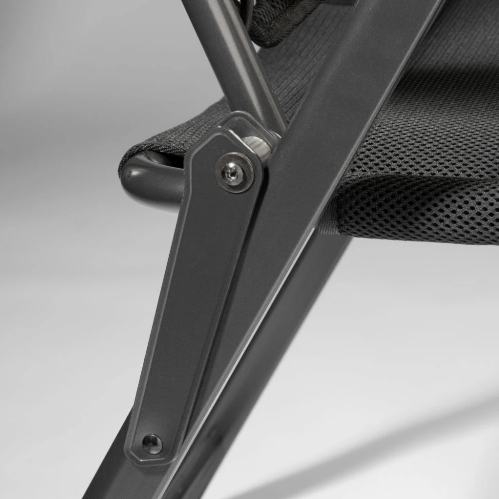 Ergonomischer Sitzkomfort und Entspannung. Aus hochwertigen Material und verstärktem Aluminium gefertigt, erfüllt dieser Stuhl höchste Ansprüche an Qualität und Bequemlichkeit. Die teilweise elastisch geschnürte Rückenlehne bietet ein zusätzliches Mehr an Komfort. Das stufenlos verstellbare, ergonomisch geformte Kopfpolster sorgt für zusätzliche Entspannung. Dank der durchgezogenen Sitzfläche wird die Belastung optimal verteilt.