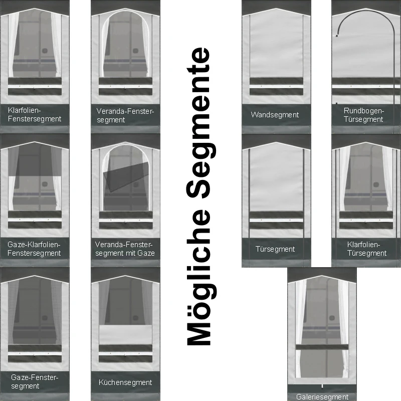 - alle Gazefolien-Segmente haben doppelte Fensterklappen (Klarfolie und Planenstoff)