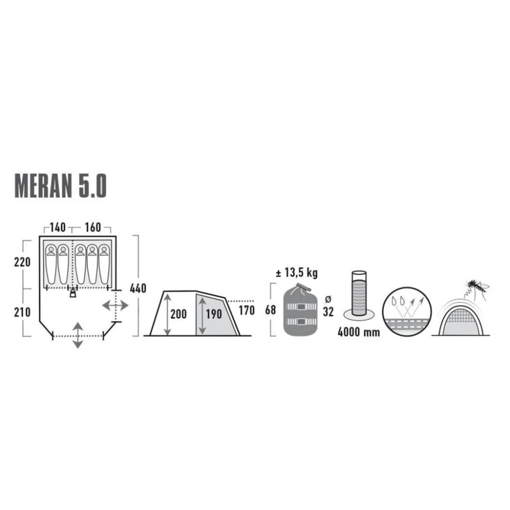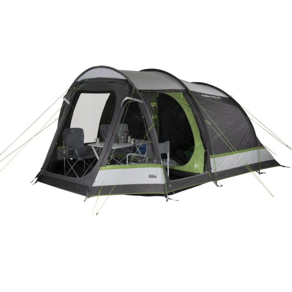 Kompaktes Tunnelzelt mit eingenähtem Boden, der Feuchtigkeit, Schmutz und Krabbeltiere aus dem Zelt fernhält. Der Wohnraum in 1,9 bzw. 2 m Stehhöhe bietet Platz für die Campingausrüstung. 2 Moskitonetz-Eingänge belüften den Wohnbereich und halten Insekten aus dem Zelt. 3 Klarsichtfolienfenster bringen Licht in den Wohnraum, Gardinen schützen vor neugierigen Blicken. Das Dach hat eine Aluminiumbeschichtung und ist hitzereflektierend. 2 Dauerventilationen belüften das Zelt auch an regnerischen Tagen und sollten immer geöffnet sein.