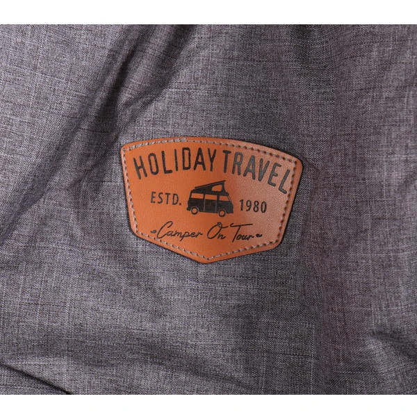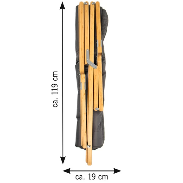 Grau melierter Lounge Sessel mit gepolstertem Stoff (Bezug abnehmbar), das Gestell ist aus Bambus. Inklusive praktischer Tragetasche.
