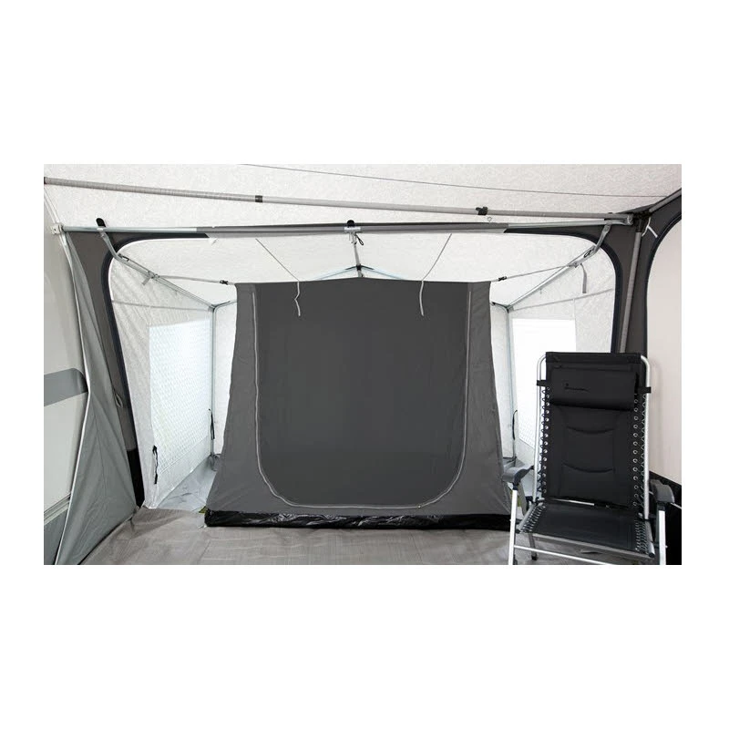 Durch in der Länge verstellbarer Aufhängegurte, kann diese Kabine in einem Anbau oder auch direkt im Vorzelt montiert werden.