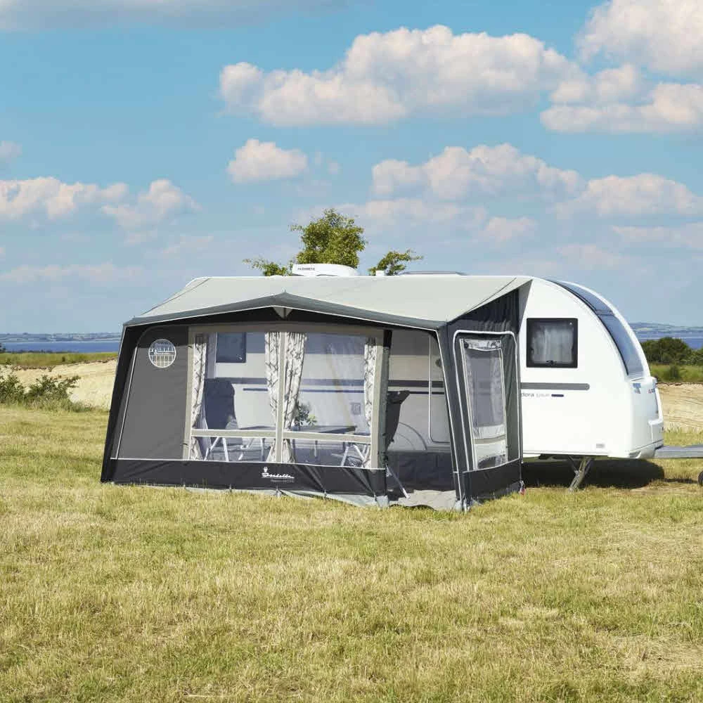 Natürliche Farben, wie man Sie auch in den steinigen Bereichen der dänischen Steilküsten findet, finden sich im neuen Magnum Etna wieder. Das Magnum begeistert mit schnellen, unkomplizierten Aufbau und einer großen Flexibilität. Spezielles Anschlusssystem für einen guten Abschluss am Wohnwagen, atmungsaktives Gewebe, großes Moskitonetz in beiden Seiten, Hochentlüftung verschließbar. Alle Front- und Seitenteile sind abklappbar bzw. herausnehmbar.