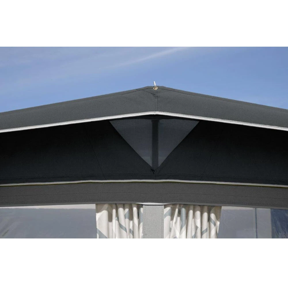 - Dach: Isaroof 285 g/m2 – Besonders UV-absorbierendes Polyestermaterial, das mit 3 Schichten atmungsaktivem Acryl nachbehandelt wurde