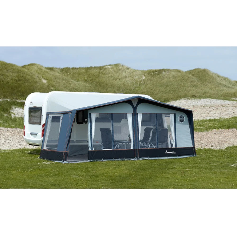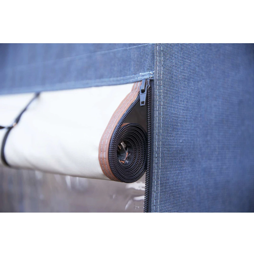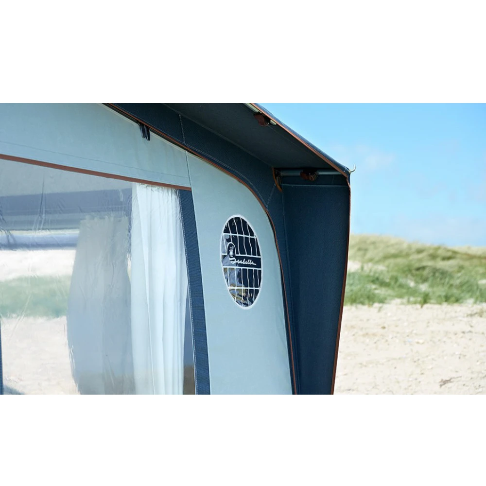 Sie können alle Front- und Seitenteile zu einer Verandalösung abklappen oder auch komplett herausnehmen. So verwandelt sich Ihr Vorzelt in ein stabiles Sonnendach! Zwei große Gazelüftungen in beiden Seitenteilen sorgen, bei geschlossenen Seitenwänden, für Frischluft ohne dass lästige Insekten eindringen.