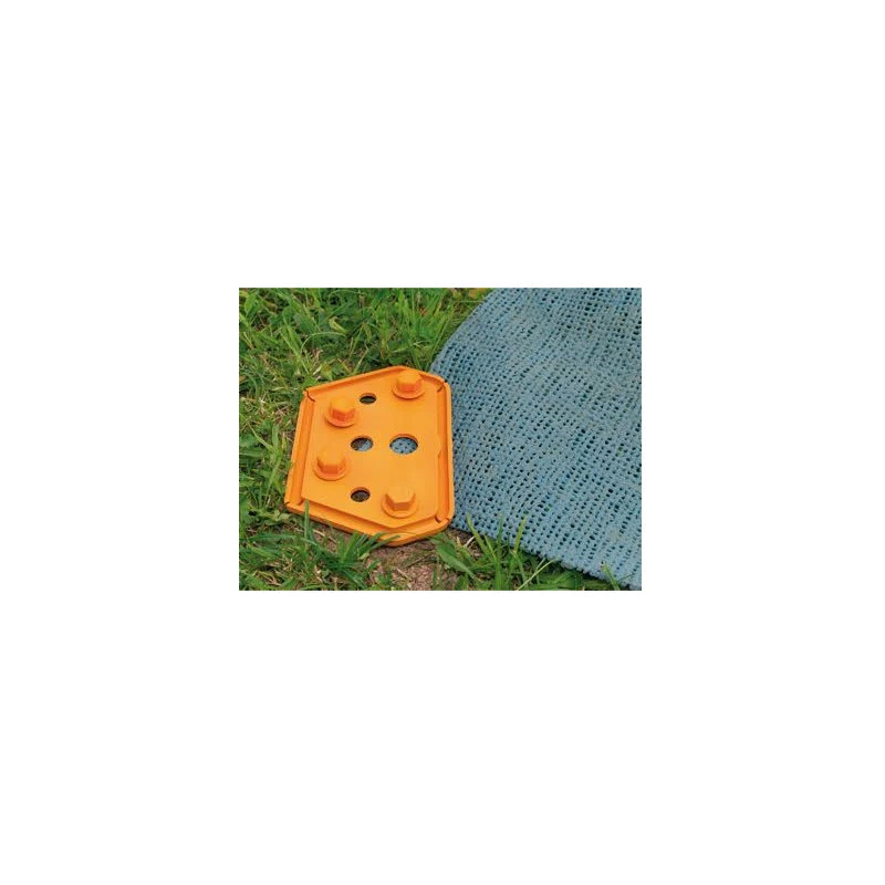 Peggy Peg Uni Platte 4-er Set. Zur Befestigung von Zeltteppichen, Folien und Auslegeware. Hält das Material am Boden fest, ohne es zu durchlöchern.