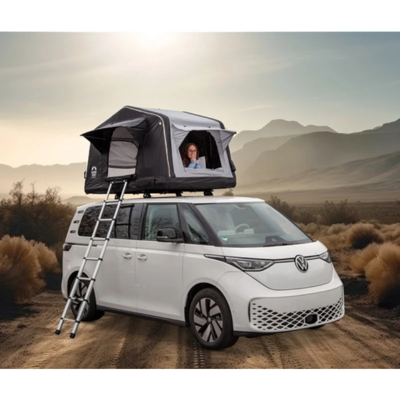 Lieferumfang: Dachplattform, Zelthaut, Aufblasbare Matratze, Matratzenauflage, Teleskop-Leiter, Cover, Dachhimmel, Handpumpe, elektrische Pumpe, Heringe