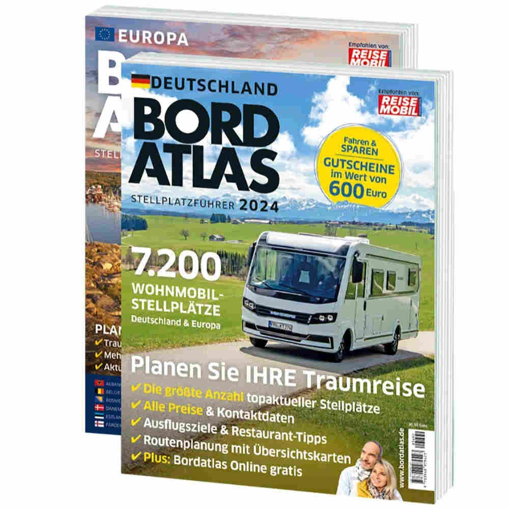 Das Standardwerk für den Reisemobilisten für Deutschland und Europa. In zwei Bänden (im Set) werden über 7100 Reisemobil-Stellplätze vorgestellt. Zusätzlich enthält der Bordatlas Gutscheine für Stellplätze und Restaurants und einen exklusiven Newsletter-Service mit brandaktuellen Stellplatz-Informationen.