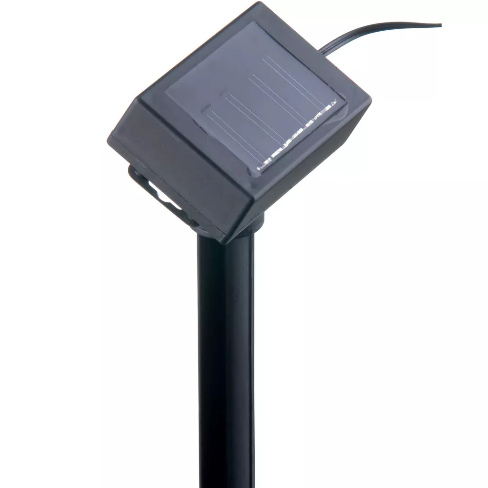 Weiße LED´s in 10 farbig sortierten Laternen mit separatem Solarmodul und wetterfesten Lampenschirmen.