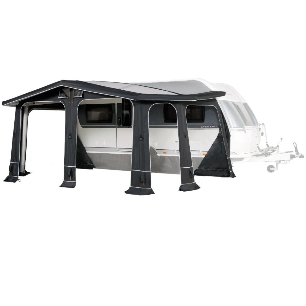 Das erste volleingezogene Luftschlauch-Vorzelt mit einer Tiefe von 280 cm. Speziell entwickelt, um vor Ihrem Wohnwagen einen großen, luxuriösen Wohnraum mit viel Tageslicht zu schaffen. Wetterfest, mit versiegelten Nähten und doppeltem Faulstreifen. Optional kann das Vorzelt an der gewünschten Seitenwand mit einem Anbau erweitert werden.