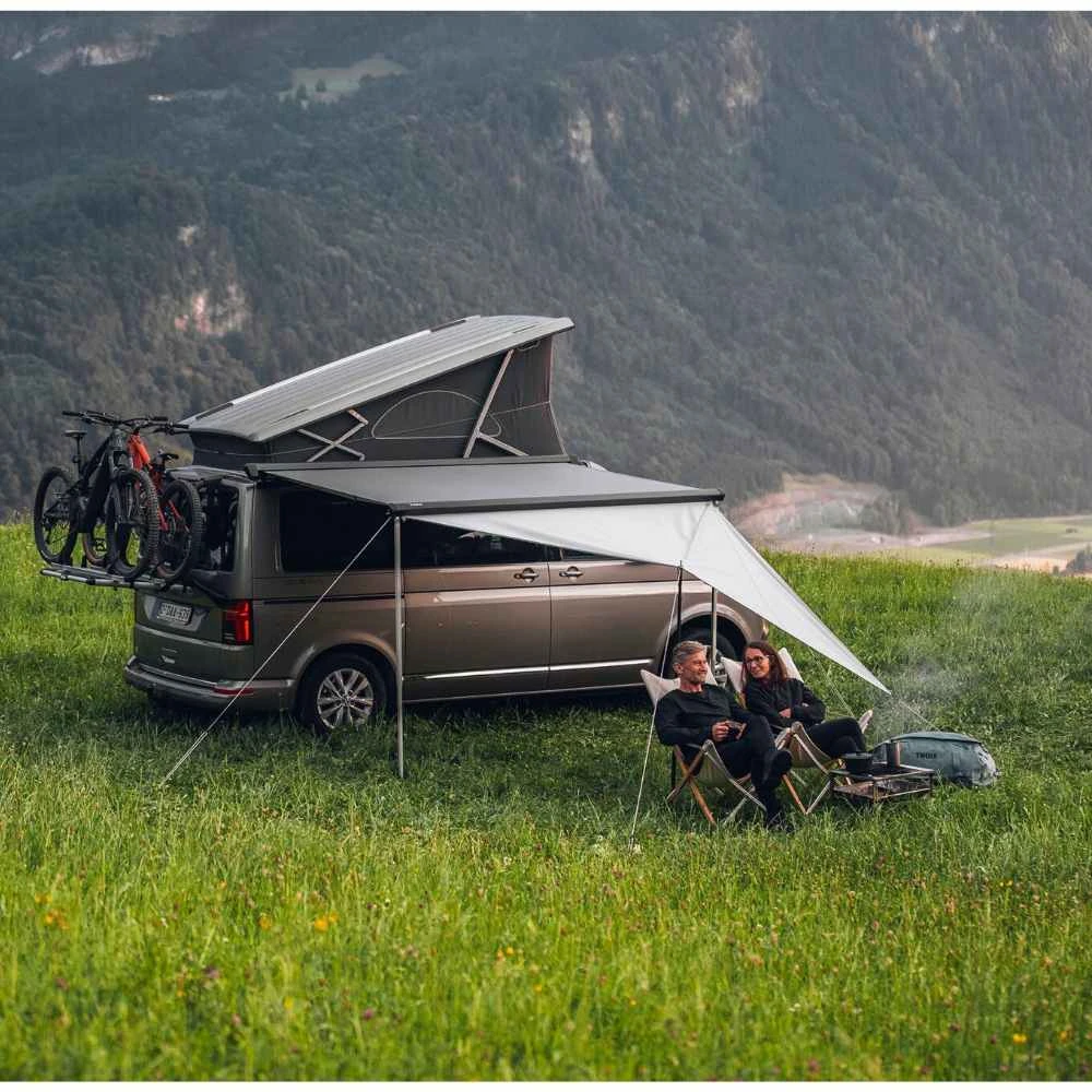 Das modulare Paneel-System Subsola für einen attraktiven Wohn- und Aufenthaltsbereich beim Campen wurde speziell für Kompakt-Vans entwickelt. Es sorgt für Privatsphäre und Wetterschutz rund um die Thule-Markise.