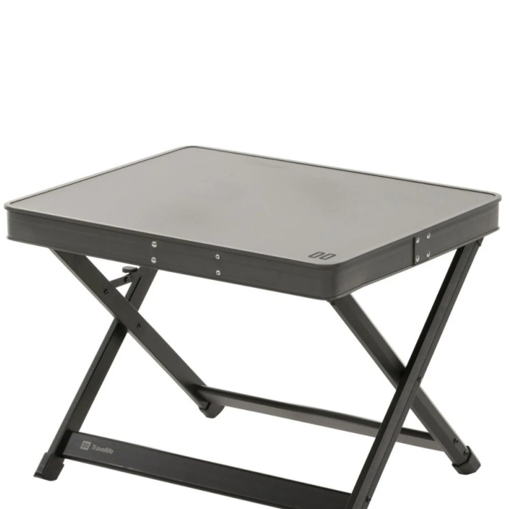 Mit der Tischplatte Cosa wird eine Travellife-Beinauflage zum Beistelltisch. Sichere Befestigung mit Klickschnalle.