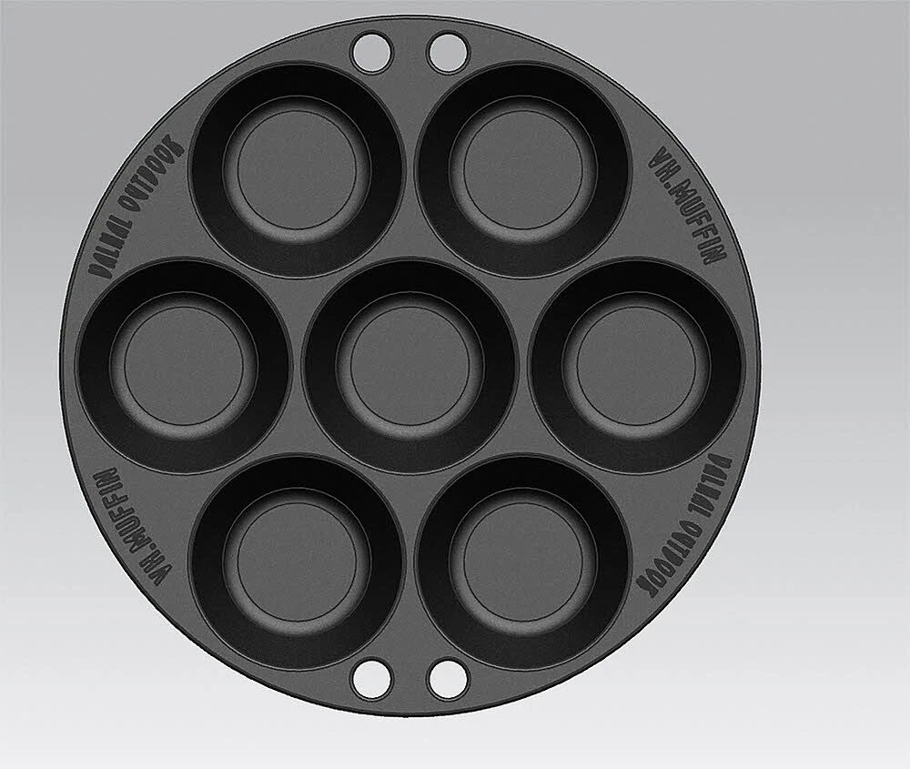 Die Muffinform von Valhal Outdoor bietet Platz zum Backen von 7 Muffins auf einmal. Sie ist aus Gusseisen und kann im Backofen, im oder auf dem Grill verwendet werden, hat aber auch einen Griff, um sie z. B. an ein Stativ zu hängen. Mit seinem Durchmesser von 22 cm passt er auch in Dutch Ovens von 6,1 l und mehr. Dadurch werden die Möglichkeiten und die Verwendbarkeit weiter erhöht. Natürlich können Sie mit der Muffinform die leckersten Muffins backen, aber das ist noch nicht alles. Sie können auch herzhafte Gerichte wie z.B. Mini-Quiches zubereiten.