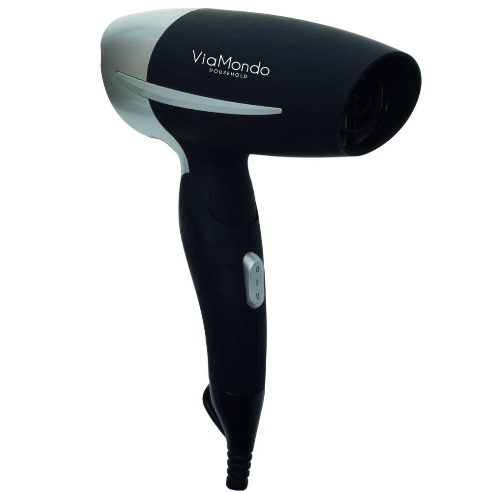 Der faltbare Haartrockner hat zwei Heizstufen und wird in einer Aufbewahrungstasche geliefert.
