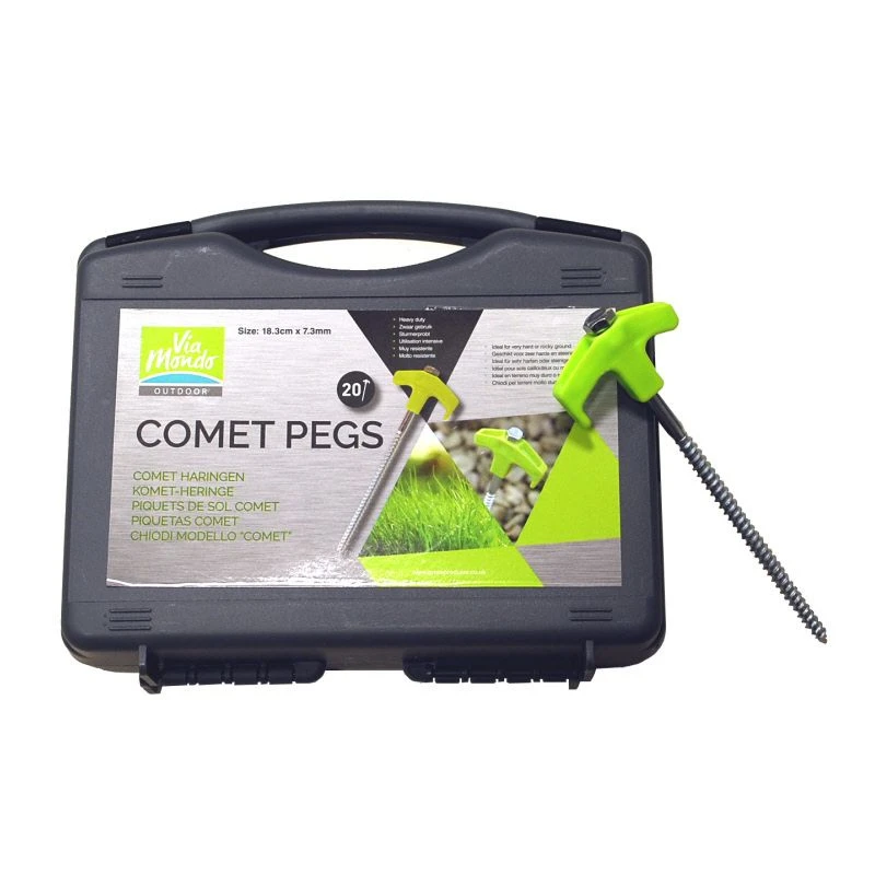 Gehärteter Stahl für steinige Böden. Mit Spezialkopf zum Einschrauben mit dem Akkuschrauber. Inklusive Kunststoff-Tragekoffer. Der Schraubhering-Adapter gehört nicht zum Lieferumfang. Bitte separat mitbestellen (siehe Zubehör).