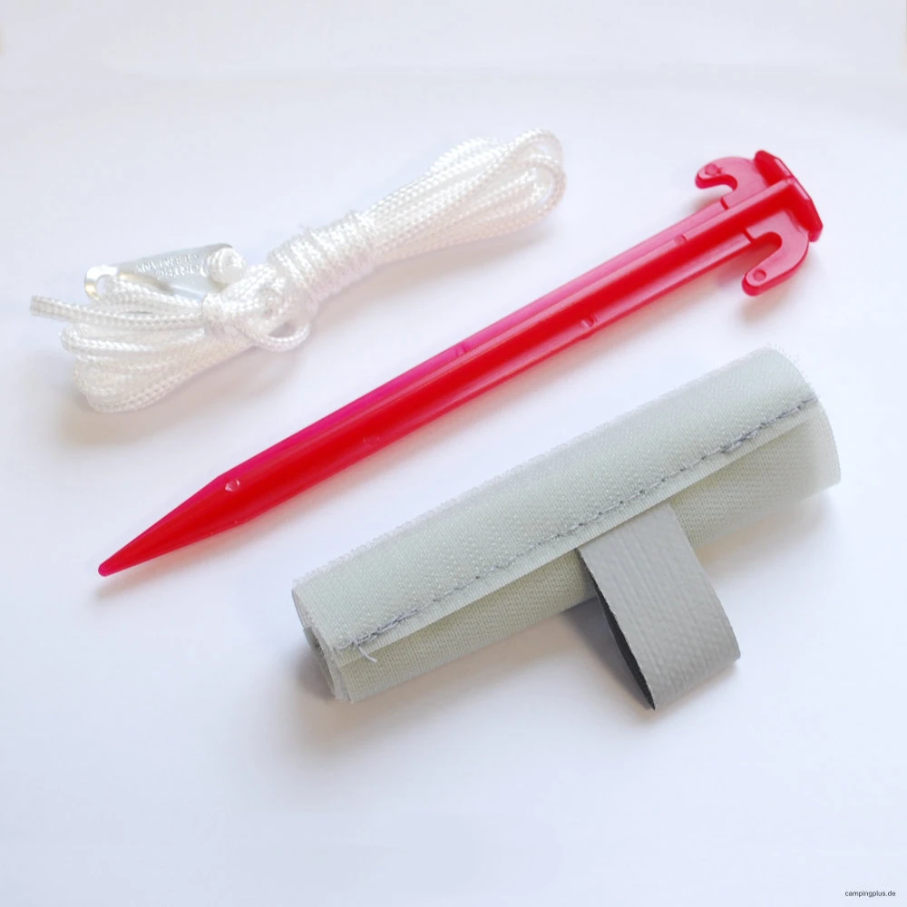 Die Zeltdachbefestiger werden um die Dachstange gewickelt und am vorhandenen Klettband des Rolli Daches befestigt.